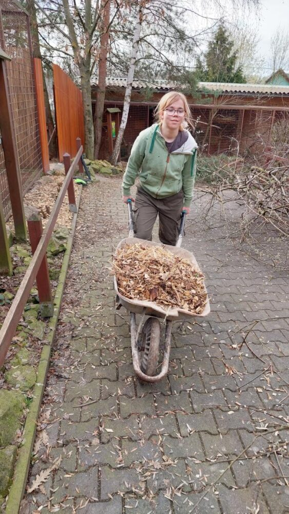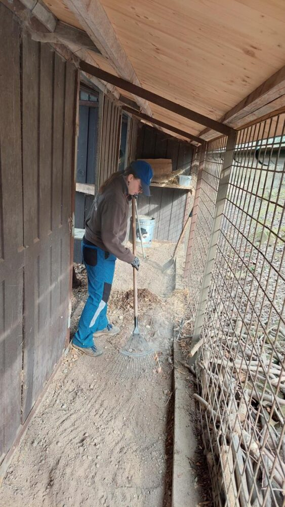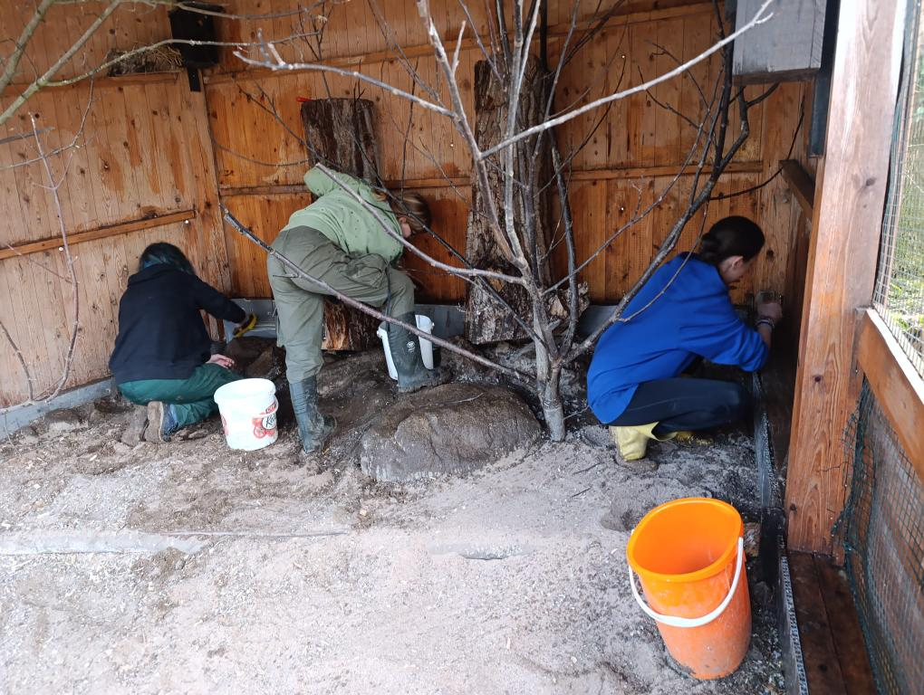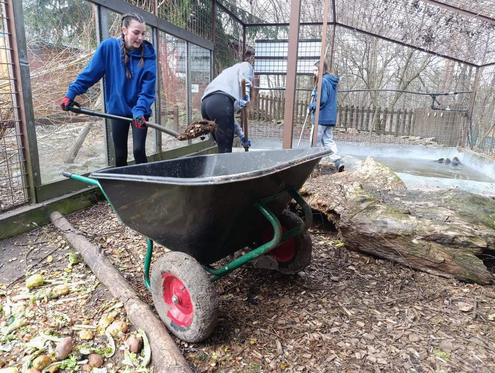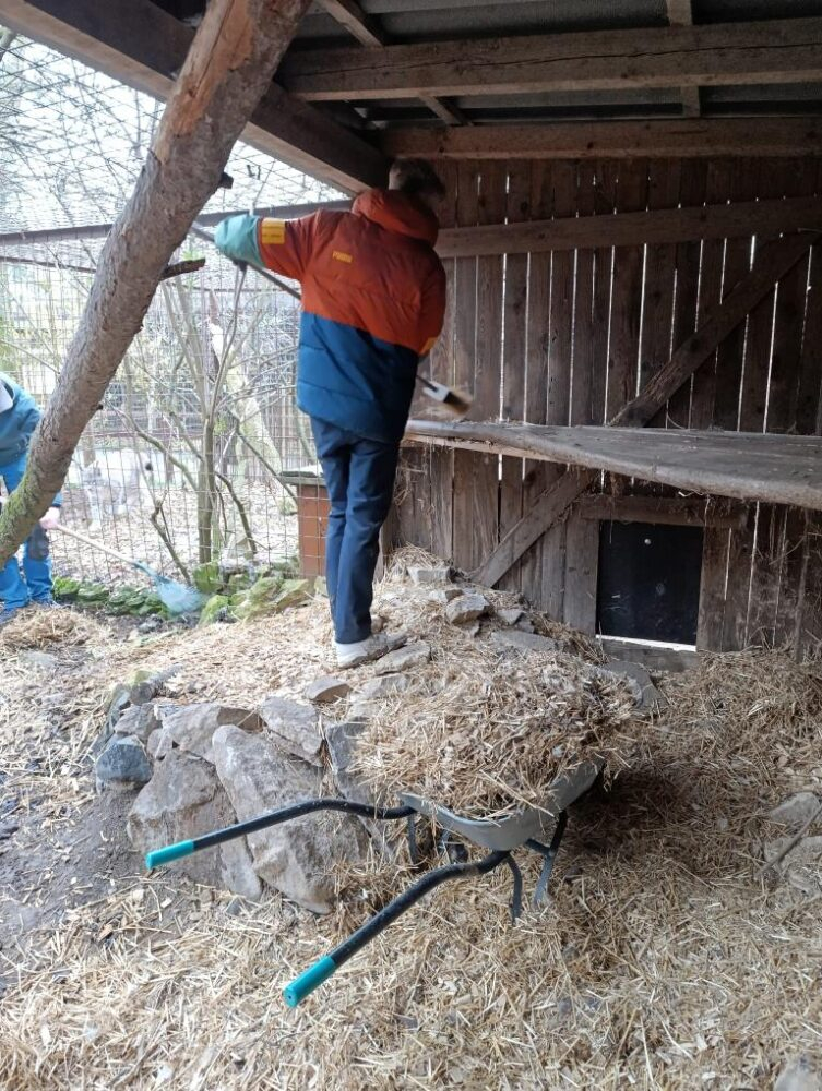 Do Záchranné stanice pro handicapovaná divoká zvířata v Pasíčkách jsme přijeli zase po roce a docela dobře jsme tušili, co nás čeká. Dohromady jsme vyčistili a novými větvemi a podestýlkou vybavili 15 voliér a výběhů. Drbání zaschlého ptačího trusu rejžáky nemusí být právě snovou náplní víkendu, ale když tím pomůžete rozjet jarní sezónu, tak to může být i zábava. Vysoké pracovní tempo zajišťovalo nasazení paní učitelky Kočí. Filozofický přesah jsem zajistil sám, vyslovením všeobecného moudra o tom, že na světě to chodí tak, že jedni to „posírají“ a druzí následně uklízí.