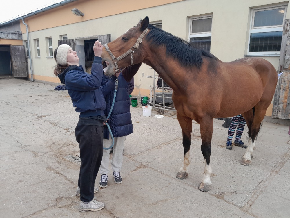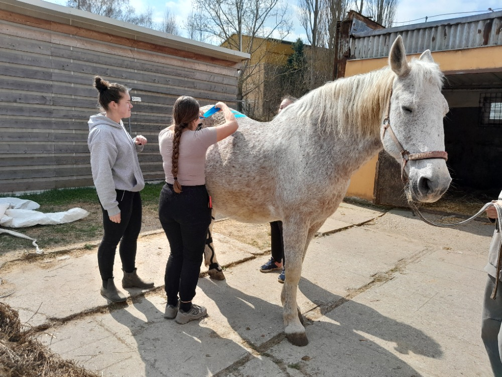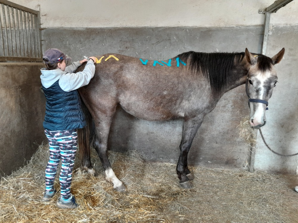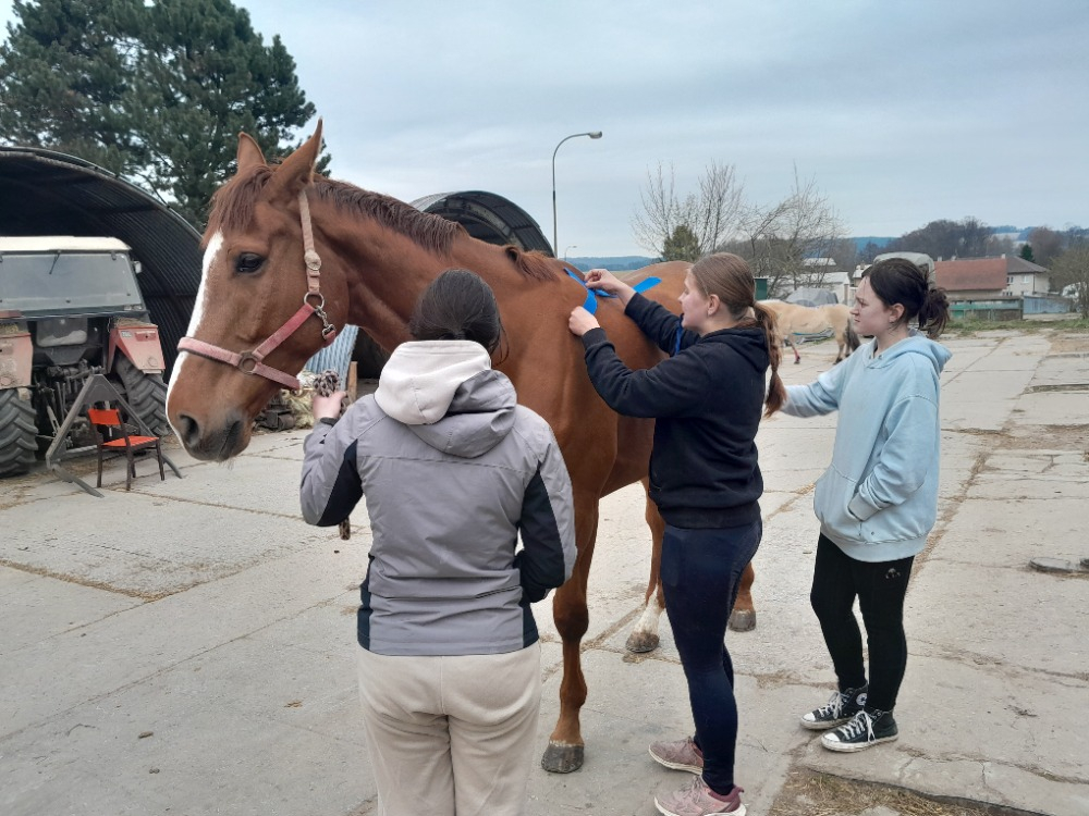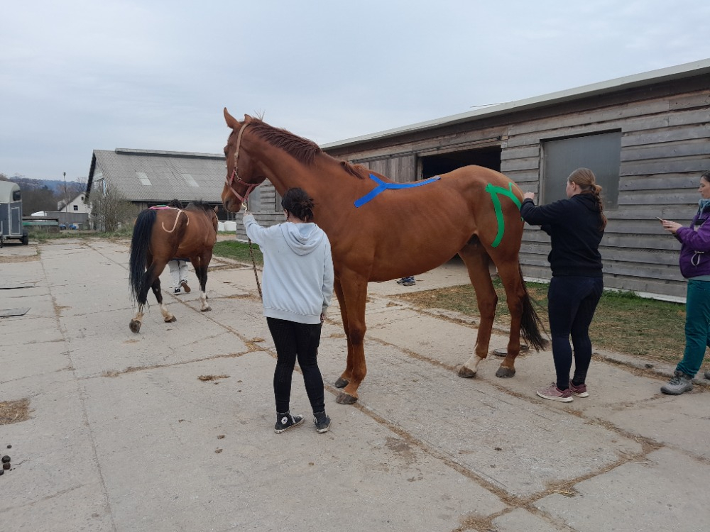 Protože praktické části kurzu byly opravdu hodně o vyšetřování jednotlivých koní a hledání souvislostí, měl tento kurz přínos nejen ve zvládnutí technik tejpování, ale přinesl našim studentkám i nové vhledy do problematiky pohybových problémů a celostní terapie koní.