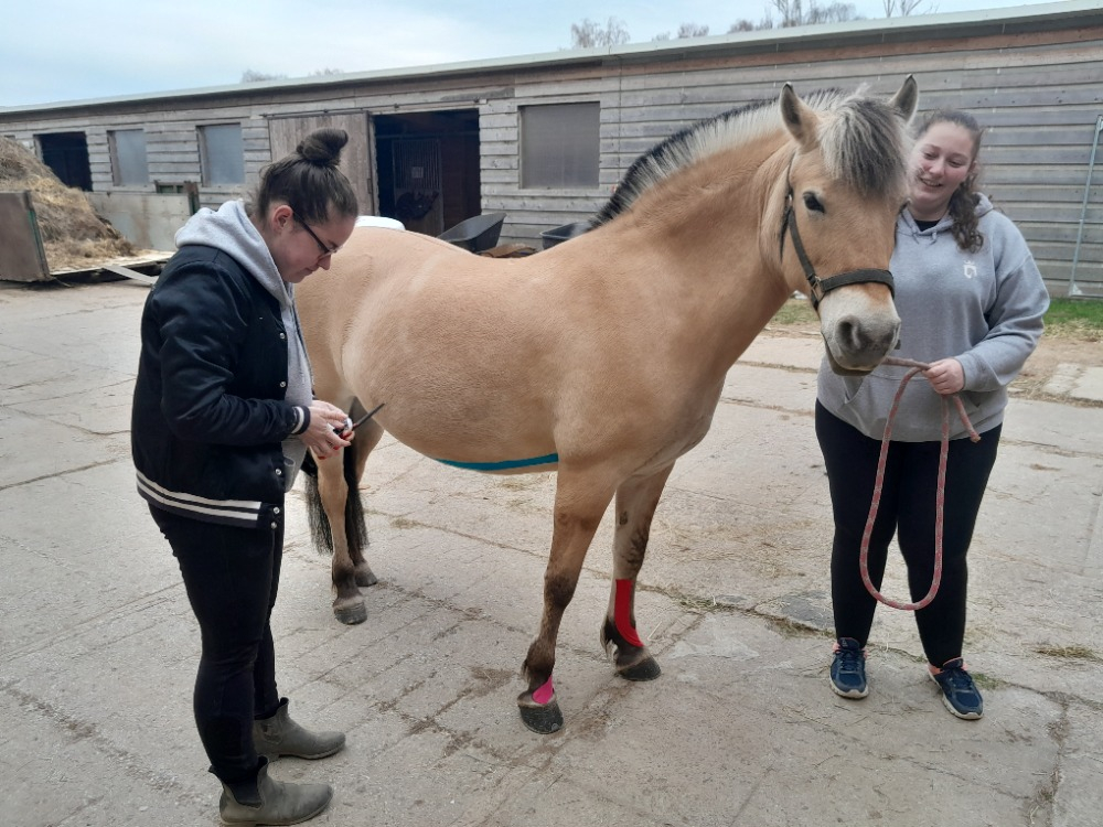 O víkendu 10. – 12. 4. 2026 se u nás konal třídenní kurz tejpování koní, který vedla lektorka a terapeutka Milena Hrabák. Spousta zajímavé teorie o tejpech, anatomii, propriocepci a problémech fyzických i psychických, které lze řešit nalepováním metrů a metrů barevných tejpů 🙂 A to všechno si pak studentky zkoušely naživo na koních.